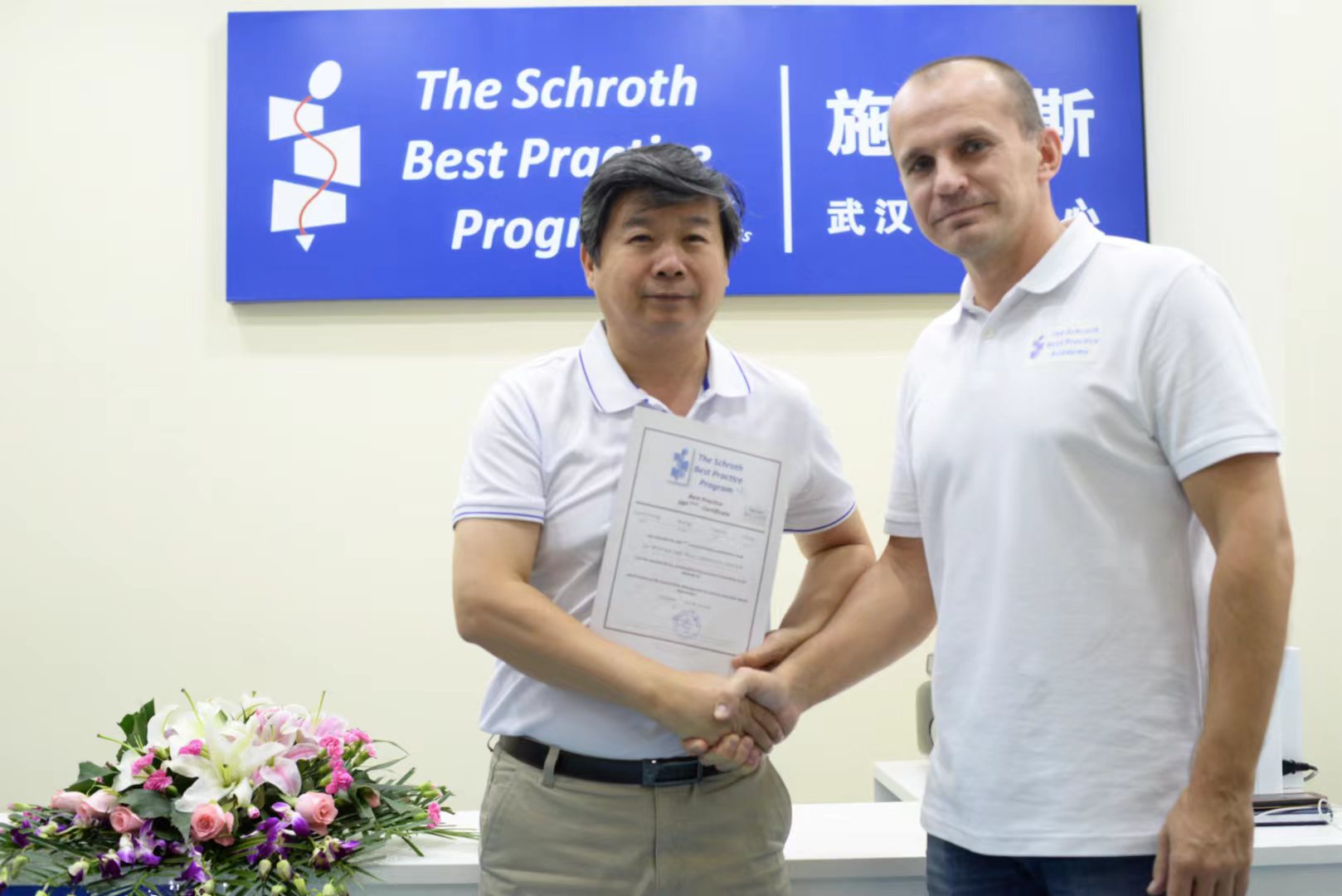 参与Schroth Best-Practise课程认证并取得认证证书与德国施罗斯脊柱侧弯矫形体系的第四代继承人马克西姆的合影